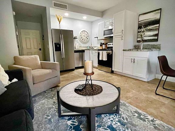 Indian Wells Dream with Incredible Mountain Views!!! This main level upgraded home is located in the prestigiously gated Indian Wells Racquet Club Community featuring 1 bedroom, 1 bathroom, beautiful mountain views, fresh interior paint, new upgraded tile flooring, stainless steel appliances, new kitchen cabinets, granite countertops, spacious laundry room in unit, ceiling fans, bright and open floorplan, ample natural lighting via sliding glass doors and windows, upgraded bathroom with new custom tile work in shower, granite countertops, new fixtures throughout, spacious covered patio, VRBO potential with 7 day minimum, Mountain Cove community amenities with relaxing pool, located close to award winning golfing, Indian Wells Tennis Garden, restaurants and shopping, and so much more at a steal of a price! Hurry this will not last!!!