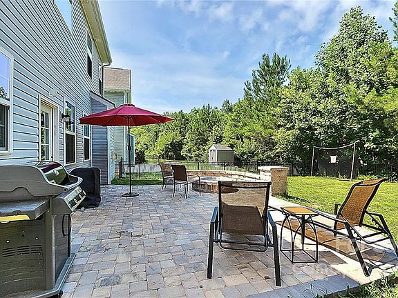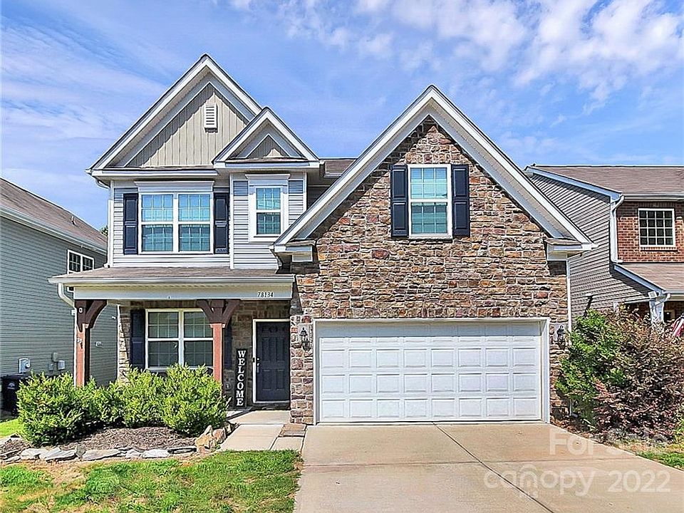 Beautiful stone accents & front porch with dark wood columns. Open floorplan with large dining room for entertaining. Three bedrooms & spacious loft with closet on upper level. Gas log fireplace in great room open to kitchen with island and eat-in breakfast area. Prefinished wood floors throughout 1st floor. New Google Nest thermostats. Smooth-top stove, granite countertops, castled dark wood cabinets, recessed lighting, stainless appliances, built-in microwave & pantry. Half bath with pedestal sink on main. Master suite with walk-in closet, dual sinks, garden tub, separate shower and commode room. 2nd bedroom with adjacent sitting area. Custom stone patio and large stone firepit with gas starter new in April 2020. Level fenced backyard backs to established trees. Air conditioning replaced in 2021. Walnut Creek neighborhood boasts large pool, recreation club with fitness facility, walking trails, tennis, ballfield, neighborhood sidewalks and nearby shopping!