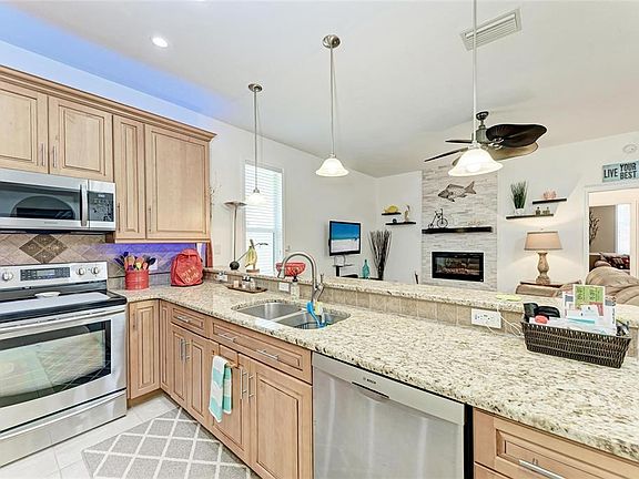Welcome to this stunning, move-in ready home located in the desirable Creekwood subdivision. Offering low HOA fees and a host of community amenities—including a pool, tennis courts, basketball and volleyball courts—this home blends comfort, convenience, and Florida charm. Enjoy your own private oasis with a screened-in, heated saltwater pool, ideal for relaxing or entertaining year-round. The exterior also features a paver driveway, generator transfer switch, and a newer roof (replaced just 7 years ago). The garage floor has been finished for added utility and style, and the home has been outfitted with hurricane shutters for added protection and peace of mind. Inside, you’ll love the upgraded kitchen featuring custom cabinets, beautiful countertops, and thoughtful extras like pull-out shelves and soft-close drawers—perfect for both everyday living and entertaining. With 1,931 square feet living space, including a bright and versatile 222sq ft Florida room. The home boasts a spacious, open layout with abundant natural light and quality finishes throughout. The kitchen flows into a cozy family room featuring a modern electric fireplace mounted on the wall, adding warmth and ambiance with the push of a button. Don’t miss this opportunity to own a meticulously cared-for home in one of Bradenton’s most well-kept neighborhoods. Schedule your private tour today!