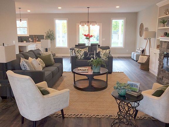 Stunning NEW CONSTRUCTION Holland Villa by StoneCrest Homes Quality Built and Well Appointed. Sparkling gourmet kitchen white shaker cabinets, Quartz countertops, tile backsplash and SS appliances. Beautiful great room cozy stone fireplace, upgraded LVT flooring and custom built ins. Relaxing covered patio. Spa like master suite features luxurious tile shower glass wall, tile floor, & Quartz dual vanity. Full Basement 9' ceiling. Many upgrades including Sun filled Marvin windows, Certainteed Shingles. Zip Sheathing and Stone Exterior. Energy Efficient. Low HOA. Amazing location.
