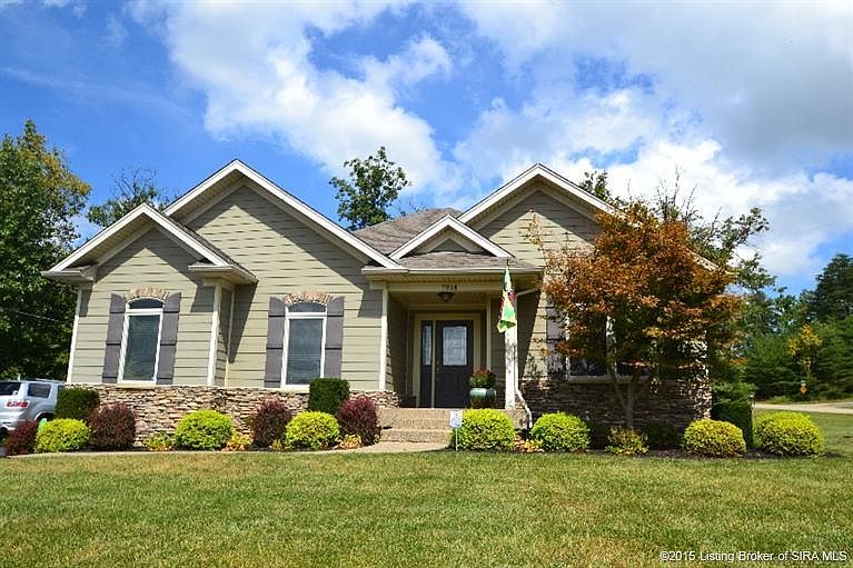 This meticulous three bedroom, two bath home with cathedral ceilings, tons of character, style and elegance is nothing short of impeccable. The open floor plan and designer kitchen includes stainless appliances, designer counter-tops and so much open expansive space with plenty of room to grow. The partially finished, full walkout basement is plumbed and ready for a bath and the walls are up and ready for drywall, doubling your living space to over 2800 sq ft! With top of the line casement windows throughout, a custom layout, a two car attached garage and charm for days, this home won't last. Imagine quiet evenings lounging on the patio around your bonfire while the sun sets over your wooded 1.03 acre gorgeous landscaped lot. A second drive leads to your storage barn, secluded by a treed island. This home is also in the desirable New Albany/Floyd County School System. See why coming home should be so easy and make your appointment to see this amazing home today!