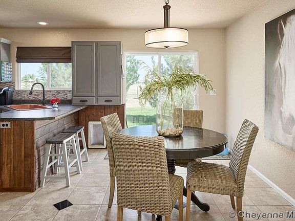 Spacious close-in rural home with four bedrooms, 5 baths, 2-car attached garage and 40' x 30' detached 3-car garage/outbuilding. Updated gourmet kitchen with gorgeous countertops and exquisite copper sink. Conveniently located just west of Warren Air Force Base. Oasis of mature landscaping on 4.23 acres with automated sprinkler system. Hot tub & green house included. Directions from West Happy Jack Road: Turn right on Roundtop Rd. Turn left on Rucker Rd. Right on Rolling Hills. Left on Cox Rd. WOW!