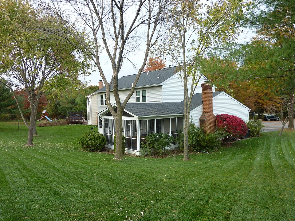 2-story Ryland "McHenry" colonial with finished basement; central air with gas heat; new windows and new roof in 2010; updated kitchen with custom cabinets and granite countertops; fireplace with wall-to-wall custom shelving; 16 x 16 screened-in porch provides privacy in a peaceful setting; mature shade trees include willow oak, pin oak, red maple, white pine, and ornamental crabapple; great neighborhood, great schools, and a great place to raise a family.