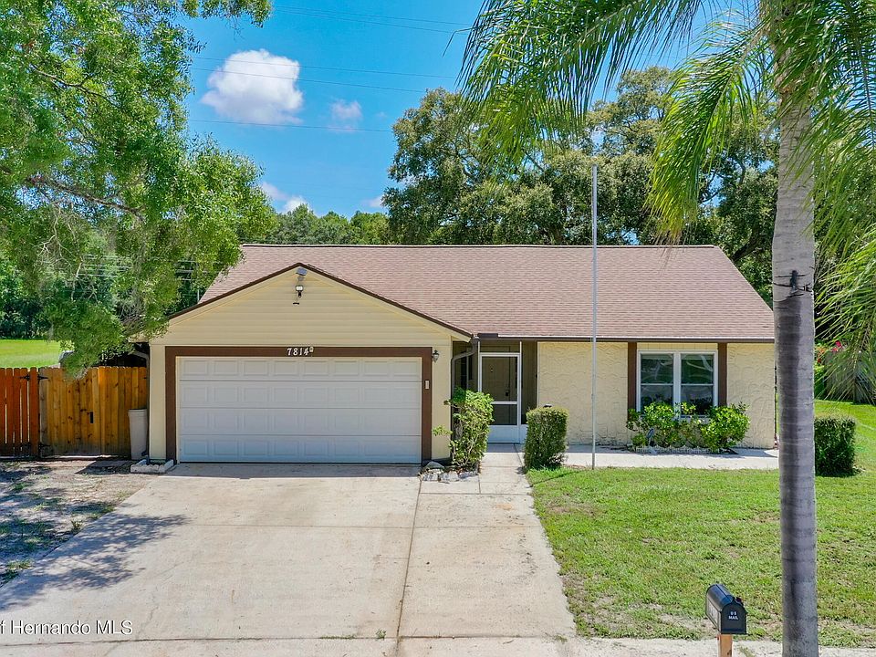 Come and enjoy the Florida lifestyle in this charming 3 bedrooms, 2 bath, 2 car garage, solar-heated, salt system pool home located in the highly desirable Trinity area in the Seven Springs neighborhood. Get creative while living here and redesign with your own modifications you've been dreaming of. As you enter you will be greeted with an open floor plan that features a living room/dining room combo with wood look tile and high ceilings. The kitchen features ample space with a closet pantry. The master bedroom is generous in size, offers a double closet and new flooring. Both bathrooms have updated vanities. As you step out into the screen enclosed lanai you can relax and enjoy the beauty and serenity by the pool with no rear neighbors and a completely fenced yard. Other features include Roof 2019, AC 2018, pool & solar 2005, newer pool pump, new interior paint, newer windows throughout, new laminate flooring in bedrooms, small shed stays (Large one does not) and alarm system. The attic offers additional storage space. This home is located close to shopping, restaurants, hospital, entertainment, conveniently located close to the Suncoast Parkway for work or play! Enjoy everything Tampa Bay has to offer from the new Downtown Riverwalk, TOP US BEACHES, boating, fishing, golfing, cultural entertainment, and museums...and of course year-round beautiful weather!