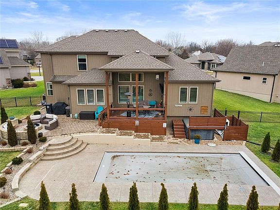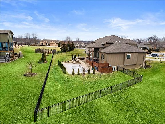 Welcome home to Weatherby Lake! This breathtaking newer home situated in a culdesac of the West Ridge Subdivision in Weatherby Lake is an absolute dream. You can have your lake lifestyle living, and your very own, pristine, saltwater pool in your backyard! You're going to love the convenience of the main level living in this 1.5 story floor plan built by Klopfenstine. It's open concept is perfect for your everyday living and entertaining as well. With 2 bedrooms/2 baths on the main level, and 3 bedrooms/2 baths upstairs, your family will love their private spaces, and enjoy time together as well. Finally, if you love to entertain, this basement is all you'll ever need! With an exquisite wet bar, recreation room big enough for pool, shuffle board, game tables, and more, the party will run itself! The basement is also equipped with a study and full bath for those working from home. When you call this beautiful house, home, your toughest decision will be, do we go to the pool or the lake?