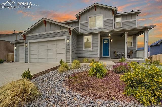 2-story MODEL quality-built home! VIEWS VIEWS VIEWS and walkout basement! From the front of the home there is a lovely covered porch that overlooks the Xeriscaped front yard w/expandable drip system. As you enter the home you are greeted by a bright & open main level w/well-appointed updates &tons of natural light! Energy efficient throughout, w/a HERS energy rating under 50, making this home truly functional for every lifestyle. Engineered hardwood floors on main level & a kitchen you must see to appreciate w/slab quartz counters, Bosch stainless steel appliances, upgraded cabinets, handles, fixtures & soft close drawers you will be simply amazed! Over-sized dining area is equipped with gorgeous lighting & large enough for seating 8-10. For those nights you want to take your dinner party outside you are just steps away from 1 of the 2 amazing covered patios - perfect for outdoor entertaining. While still on the main level there is a craft room complete with built in desk with access to an over sized 3-car garage! Also on the main level is a spacious bonus room (think office/study or play room). Access the upper level via modern, iron banisters which lead you to the spacious Master Suite complete w/ a spa like bath, freestanding tub, separate shower, large walk-in closet - updates galore! Relax in the large family room while down the hall there are 2 secondary beds w/walk-in closets and 4pc hall bath, Need even more room? The finished walk-out basement will amaze with a comfortable family room, 2 spacious beds and a full bath! Thru the basement door there is another covered patio and large grassy cedar fenced backyard. Backs to open space with INCREDIBLE MOUNTAIN VIEWS! Convenient location close to all military bases, shopping and minutes from I25. Please see VIDEOS!