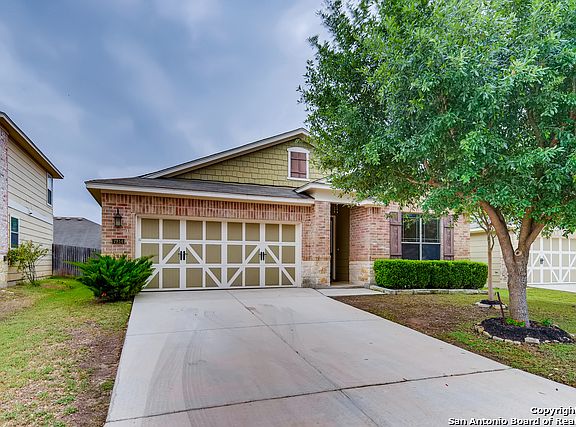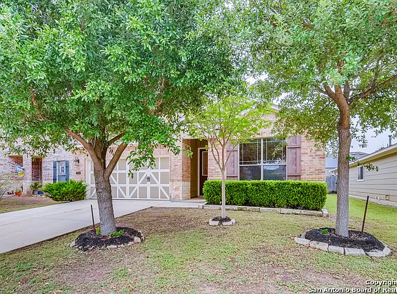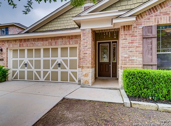 Stunning single story brick home w/rock trim. Lots of quality upgrades like corner fireplace and engineered wood flooring. Open kitchen with breakfast bar overlooking the living room. Plantation shutters. Bountiful cabinet space plus walk in pantry. 3 bdrms plus study/4th bdrdm/flex room/gamerm. Spacious master suite with tub and separate shower w/grab bars plus walk in closet. Maintainable back yard with trees and covered patio. Located in wonderful gated neighborhood with community pool and park just off Culebra/FM 471 outside Loop 1604 near the Shops at Alamo Ranch. EZ access to Hwy 151 and Lackland AFB. All the conveniences yet located outside the city limits so no city taxes!