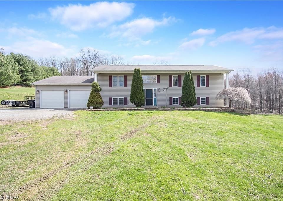 Beautiful split level home on nearly 2 acres in quiet country setting. The upper level features a spacious living room, open eat in kitchen with appliances & sliding glass doors that lead to a large covered back deck. 3 bedrooms. Partially finished walk out lower level with bar and Rec room. Oversized attached garage. Call today! This one won’t last long.