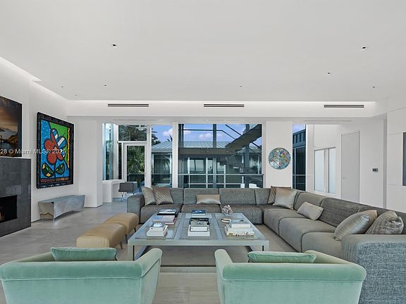 Rising above Miami Beach’s only oceanfront enclave, this contemporary estate by Ramon Pacheco & Coastal Construction spans 3 levels w soaring 11–14’ ceilings, walls of glass & an interior water courtyard. Dual chef’s kitchens w Wolf, Sub-Zero & Gaggenau appliances, multiple entertaining areas, wine cellar & full smart home automation define modern sophistication. The 3rd-floor primary suite offers a private oceanfront terrace & spa bath, while a steam shower at pool level provides the ultimate in relaxation. Outdoors, an updated saltwater pool, summer kitchen, firepit, sunken lounge & refinished stone terraces create a resort-like escape. Enhancements include new A/C, TVs & AV, brand-new driveway, onyx kitchen counter tops, full-house generator, water purification & 2-car A/C garage.