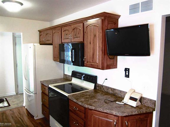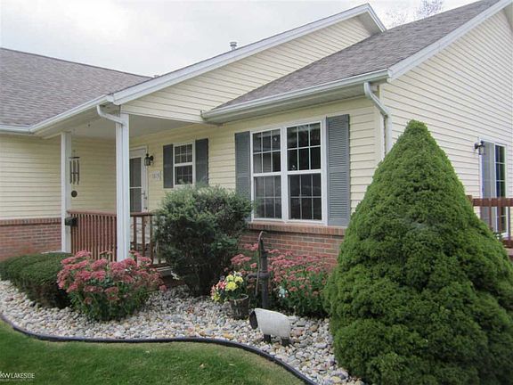 Beautiful move in ready 2 large bedroom condo unit with 1.5 baths and attached garage. 1200 sq ft. on one floor no stairs New hickory kitchen with glide pull outs, Corian sink, newer fridge, micro and stove, new pergo flooring...electric shade on kitchen window. Large open family room with vaulted ceiling and side ledges with new tinted door wall going out to your private deck. Home has alarm system, new storm and steel doors. Large laundry room with ample storage and utility sink. New washer and dryer included, wh 14, completely handicap friendly. Includes 2 mounted flat screen televisions. Attached 1+ garage with large pantry area. Roof was replaced in 2015 and huge open deck on side of house for your enjoyment. Move in condition. Large common areas and flexible association give this complex charm. (1person at least 55 yrs old). Low association fee covers exterior maint. With in walking distance to Almont Vill
