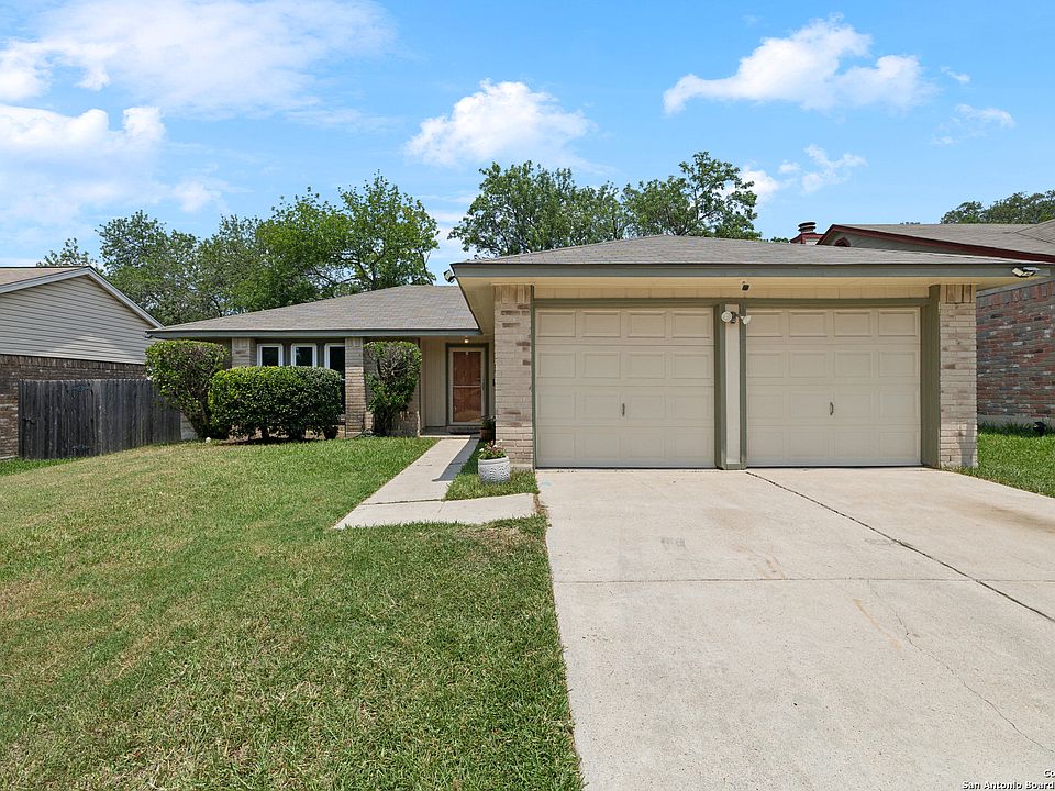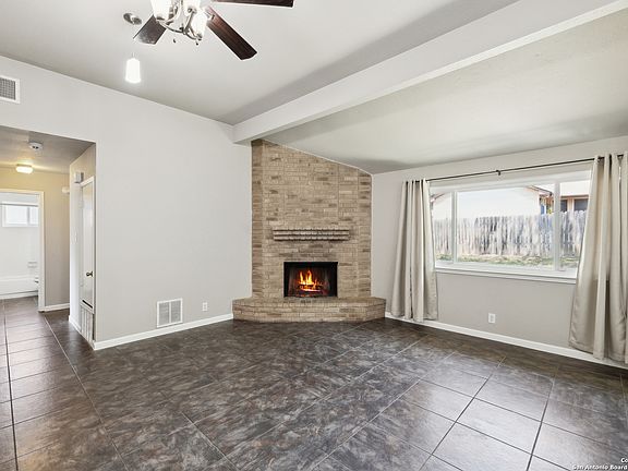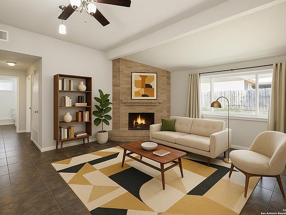 Welcome to 7815 Forest Ranch - a beautifully maintained 2-bedroom, 2-bath home offering comfort, convenience, and style in every corner. This thoughtfully updated residence features 1,168 square feet of living space with an open-concept layout, perfect for both daily living and entertaining. Enjoy cozy evenings by the charming corner fireplace in the spacious living area, highlighted by fresh paint and ceramic tile flooring that extends through the living, dining, kitchen, and bathrooms. The kitchen offers ample cabinetry, stainless steel appliances, and a sunny window over the sink. Plush new carpet adds warmth to both bedrooms, creating serene retreats for rest and relaxation. Recent upgrades include double-pane windows (2023), gutters (2023), and a water heater (2021), providing energy efficiency and peace of mind. Step outside to a private patio and a generously sized backyard shaded by mature trees-ideal for quiet mornings or weekend gatherings. Just down the street, enjoy access to Woodcrest Park, a neighborhood gem featuring walking trails, a playground, and open green space. Ideally located with easy access to Randolph Air Force Base, The Forum, IKEA, Costco, H-E-B, and I-35, this move-in ready home offers both tranquility and convenience. Come experience the perfect blend of updates, charm, and location!
