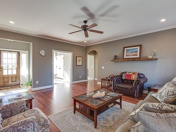 • Interior Features: Built-in Shelves, Ceiling Fan(s), Dryer Connection, Garage Door Opener(s), Pantry, Separate Shower, Solid Surface Counter, Washer Connection, Kitchen Island, Laundry Room - Main Level, Built-in Furniture, Arched Doorways, Alarm and/or Security System