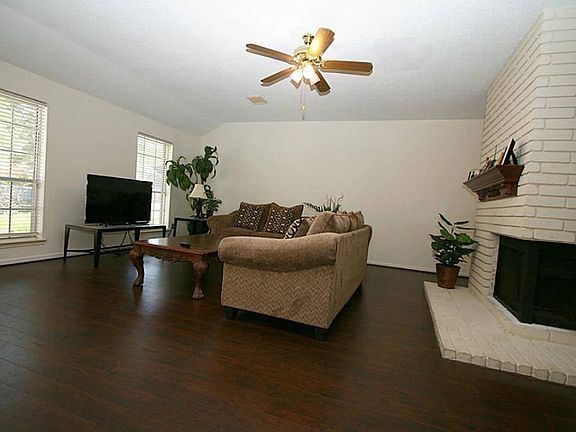 Beautiful 1-story dream home ready for quick move in!Gorgeous curb appeal. Wood flooring in the den and formal dining room. Open kitchen with new granite counters, travertine backsplash, under mount sink, gas stove top and island. All bedrooms have carpet and ceiling fans. Master bedroom with huge walk-in closet and doors leading out to beautiful back yard with stone pavers patio. Master bath has garden tub separate shower and dual vanity. Great Schools! Subdivision park and pool right around the corner!