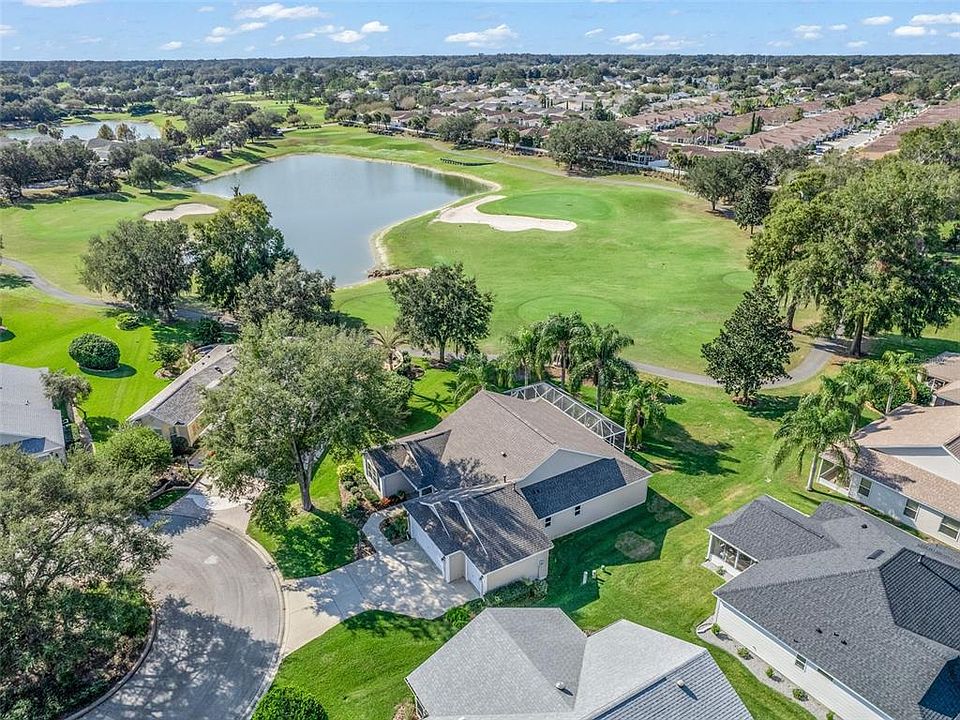 GOLF FRONT & WATER VIEW 3/2 HIBISCUS (CAMELLIA) DESIGNER home with a GOLF CART GARAGE in the Village of Calumet Grove with unbelievable view and OVERSIZED HOMESITE that will accommodate a large POOL!!! If that’s not enough just listen to this; NEW ROOF 2022, SPACIOUS EAT-IN KITCHEN W/GRANITE COUNTERTOPS, EXPANDED SCREENED LANAI, A/C 2015, DOUBLE PANE WINDOWS, GAS UTILITIES, VAULTED CEILING, ELECTRIC CLUB GOLF CART included, FRESH PAINT, INSIDE LAUNDRY and more. The Owner’s Suite has GRANITE COUNTERTOPS, Double Walk-in Closets, Linen Closet, Double Vanities and a Walk-In Shower. Guest quarters with 2 BEDROOMS (3rd bedroom without a closet) are on the opposite side of the home providing privacy for all. The Guest bathroom has a Tiled floor and Tub/Shower combo. This beautiful home sits on a Cul-De-Sac just moments away from the newly opened FIRST RESPONDERS RECREATION CENTER and within steps of the Calumet Grove Neighborhood Pool. This great location is within close proximity to the Mulberry Grove Pool & Recreation Center, the Nancy Lopez Country Club and Mulberry Grove Shopping Center (Grocery, Drugstore, Banking, VA Center, Restaurants etc.) QUICK CLOSE available so you can enjoy the Florida sunshine this winter!
