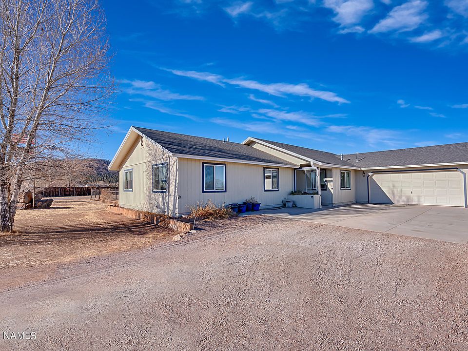 Incredible opportunity in Doney Park. The property features a main home, a large guest house, out door kitchen and living areas, fenced yards and mountain views! The Main house features 3 beds and 2 baths, along with two additional flex spaces which would make great playroom areas, or offices. The newly remodeled kitchen will have you wanting to entertain everyone! Spend your summers outside entertaining at the outdoor kitchen! There is a fully plumbed outdoor bathroom to save you the walk inside. Other outdoor features include horseshoe pits, RV clean outs, a fenced garden and multiple storage sheds. The guest house features a separate driveway, 1 full bedroom and bathroom, its own laundry and 2 car garage. This has been a successful rental unit both short and long term.