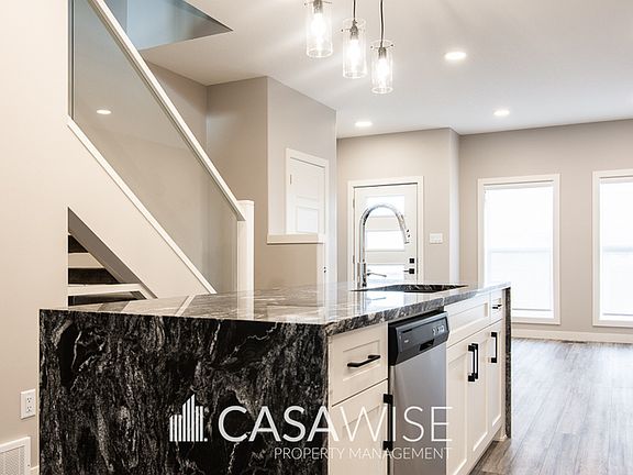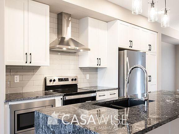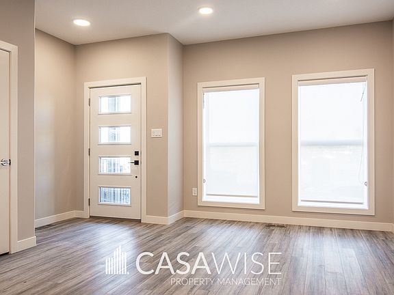 3Bed/2.5bath Main Floor! Backyard & Rooftop patio - Oversized Single Garage Experience life in one of Canada's largest sustainable communities! Blatchford aims to create a carbon-neutral neighborhood powered entirely by renewable energy. Discover this stunning, luxurious townhouse. This three-story home features an open main floor layout with the kitchen at its center, boasting a large island, quartz countertops, stainless steel appliances, and a stylish tile backsplash. The spacious living area is complemented by a separate dining space. A half bathroom near the back entrance includes built-in shelves and hooks for organization. A sleek floating staircase with glass railings leads to the upper levels. The second floor offers two generously sized bedrooms with walk-in closets. The main bathroom includes a double sink vanity, with the toilet and bathtub/shower enclosed separately. The laundry area is also on this level, featuring deluxe shelving. On the third level, you'll find another spacious bedroom with a walk-in closet, ample storage space, an ensuite bathroom with glass shower doors, and direct access to the rooftop patio. The main floor is finished with vinyl plank flooring, while the bedrooms feature carpet and the bathrooms and laundry are outfitted with vinyl tile. Fully fenced backyard. Oversized single detached garage and driveway. Fixed utility fee of $400/month (includes heat, water, and power). Additional fees may apply depending on the number of occupants. Lawn maintenance, and snow removal are tenant responsibility. The most vibrant community in town features lively street fronts, parks for recreation, and bike lanes for convenient commuting. One small pet is negotiable with a fee of $50/month. Pet approval is at the time of the application and not guaranteed thereafter. No Smoking. Professionally Managed by Casawise Property Management If interested, please provide us with your name, phone number, available times for viewings and a little background about you (when do you need the unit for, how many people would be living in the unit, etc.). Thank you!