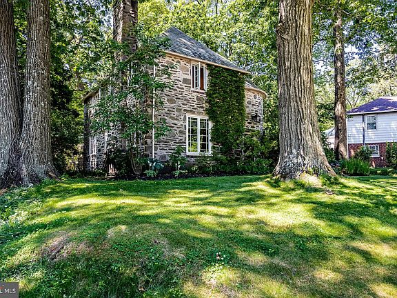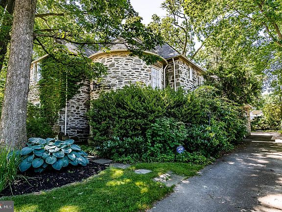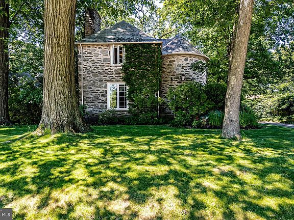 Welcome to this amazingly unique stone home with Turret on a beautiful private lot with mature healthy trees. Tired of cookie cutter homes? Love old-world charm with modern convenience? This stunning home has character, class and magnificent one of a kind features. Enter the home through a stunning front entrance into a circular foyer with original slate flooring. The living room boasts a beautiful wood -burning fireplace, three picture windows , entrance into the formal dining room, perfect gatherings and guests. French doors exiting the dining room open onto a charming patio to relax and enjoy the lovely private backyard. The dining room also features hardwood floors, built-in china closet and large windows for ample natural lighting. Entering the large French provincial eat-in kitchen you will delight in the beautiful cherry soft close cabinets with loads of storage, custom ceramic backsplash, large eating area and plenty of sunshine. Modern appliances will speak to the home chef and include a Bosh dishwasher, New GE microwave , Fridgidair refridgerator and gas stove, deep sink with garbage disposal. The beautiful picture window showcasing a deep stone ledge was just replaced and is stunning. A nook off the kitchen has a back door leading to the two car garage through a breeze way and one of the two staircases leading to the basement. There is also a second, hidden stair-case leading upstairs to the bedrooms. Once upstairs you will find four large bedrooms , three bright and fresh full bathrooms , a hall closet and an enchanting view down the spiral wrought iron staircase. The Primary bedroom has three large windows, two closets and an en-suite bath with a stall shower. The bedrooms feature charming built-ins, unique architectural details and lots of space for guests or a home office. Take one of the two staircases down to the basement and you will be impressed with all of the unique space. Downstairs you will find a large bonus room with a stone fireplace, charming antique bar and french doors leading to the back yard. There is also a full laundry room with loads of storage, a craft or work room, a half bath , storage closets and a utility room with updated HVAC unit, newer hot water heater and updated 200 amp electrical panel. Located in sought after Laverock, this charming neighborhood is so close to everything. Less than a five minute drive to Chestnut Hill, Major Highways, Trains, Buses, Restaurants, Shops, Wissahickon Park, La Salle College Highschool and Arcadia University.