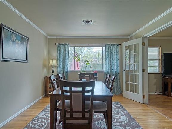 Perfect Tulsa Starter home just in time for the spring/summer months! Lovely brick and freshly painted wood exterior. Freshly painted bathrooms and kitchen all painted with a neutral palette. Classic wood floors, dining room with French doors leading in to the living room with built ins and brick fireplace. Enclosed sunroom leading out to a nice sized, fenced backyard perfect for cookouts! This home won't last long. Come take a look!