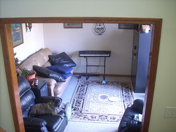 A very nice home on a prime lot in the New Haven countryside. 4 beds, 2.5 bath. 2 car garage with a 4' extension. A screened porch with cathedral ceiling that can easily be converted to a three season room. Open concept living, dining, and kitchen made for entertaining friends and family. 6' privacy fence on 2 sides giving you privacy and a 4' picket fence in the back opening to a great view of the woods directly behind the home. Built-in home theatre system with stereo speakers throughout the home and porch. All appliances stay. Custom drapes stay.