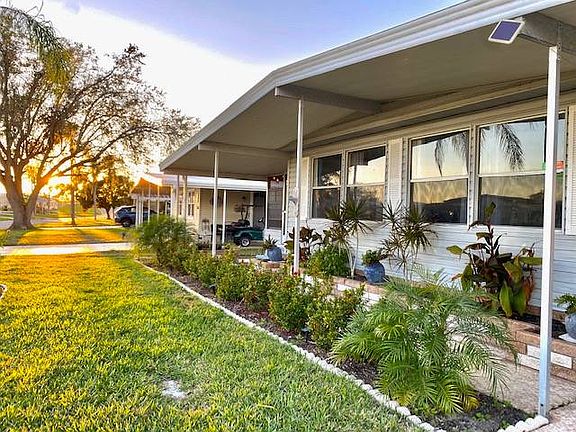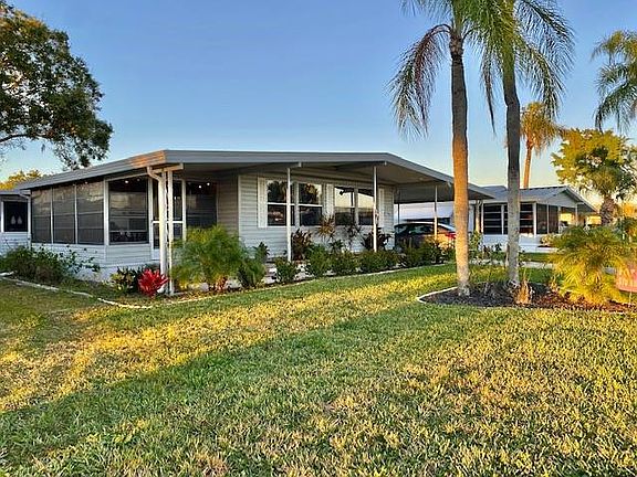 Reduced $63,500 1980, Fleetwood manufactured mobile home with 1,248 sqft of under air living space. The home features a driveway, carport, spacious screened patio and a large storage shed. The storage shed hosts the washer, dryer and utility sink. Plenty of room for your tools, beach/pool gear, bikes, holiday decorations and more. The screened lanai is a great spot to sit and enjoy the warm winter weather. Stepping inside the home you enter the updated galley kitchen. The kitchen has nice stainless-steel appliances, shaker grey and white cabinets, updated countertops, and a white sink. The kitchen features a coffee bar or wine area next to the refrigerator and a pass-through window to the living room. Dining room and living room are open with beautiful laminate flooring. The dining room has a wall hutch, for extra storage and room to display your décor. The living room is large enough to accommodate a sectional sofa. Sliding glass doors lead out to the side enclosed lanai. This is a year-round room. The options are endless with this extra space. The bedrooms are both spacious with ceiling fans. The guest bathroom has a tub/shower combo, built-in wall cabinets and a large vanity with storage underneath. The master bedroom features a walk-in closet and an ensuite bathroom. The bathroom has a linen closet and a step-in shower surround. As you exit the bathroom you enter another screened patio area. If you enjoy being outside with the Florida breeze these lanais are perfect for you! New ductwork 2021 and New electrical boxes. The roof is metal. Great location and walking distance to Harmony Hall, Pool and fitness center. Call today to make this your Florida Dream home! Colony Cove is an age qualified (55+) five-star resort community of manufactured/mobile homes. The "Cove" boasts 5 clubhouses, 6 heated pools, a riverfront pavilion and private fishing pier, a private marina, a fenced dog park (very pet friendly), tennis, shuffleboard, new pickleball courts, 2 new fitness rooms, 24-hour patrol, clubs of every interest, and much more. There are daily planned activities throughout the park. Bottom line, if you get bored here, it's your own fault! The lot rent in Colony Cove is based on the home's location. While the monthly lot rent may not be the lowest around, it's by far the best value for the money. Not only does the monthly rent cover all of the amenities of the community listed above, it also covers almost all other monthly expenses such as water, sewer, trash pickup. All property taxes, lawn maintenance...pretty much every monthly expense except electricity and internet. The current lot rent on this home is estimated at $1088.19 per month. All listing information given to us is considered appropriate and reliable but always recommend home inspections by independent companies who have a background and thorough understanding of manufactured homes. We cannot guarantee the accuracy of information given to us or the condition of the home. Lot rents are determined by the community office not our company.