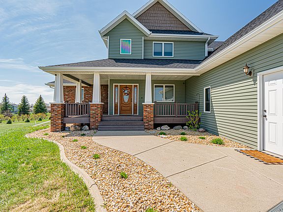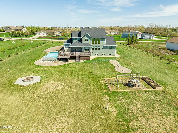 Come see this Beautiful Two story home with over 5000 sq feet sitting on 1.49 acres in the desirable Country Creek subdivision in northeast Bismarck! Upon entering the home you'll be impressed by the 18 ft ceilings, an open staircase, chandelier, & a grand floor to ceiling fireplace. From there you will notice this home's fabulous Open Floor Plan with an abundance of natural light. The gorgeous, spacious kitchen is equipped with gray cabinets, Corian countertops, tile backsplash, over sized walk-in pantry, eat-at peninsula, pull out drawers, under cabinet lighting, & black stainless steel appliances. The Dining/Living rooms have gorgeous sunset views from its large picture windows, and sliding doors that lead out to the massive deck. The main floor primary suite boasts a large master bath with his/hers sinks and his/hers walk-in closets. The main floor also has two additional bedrooms, a guest bathroom, and a large laundry room. Upstairs, you will find 3 bedrooms with plenty of closet space, an oversized bonus room, loft area, and a full bathroom. Downstairs is finished with an large family room, a game room complete with a wet bar, a theater room, an additional bedroom, a full bathroom, and a utility room with storage. The backyard is an entertainers dream with no backyard neighbors, an oversized deck, an above ground pool, fire pit area, and over 60 trees. The 3-stall garage is over 1200 sq feet, heated, has hot and cold water, drains, and even a half bath. There is also a camper/boat pad. This home has all the extras including geothermal heat, steel siding, and surround sound. Call your favorite Realtor to see this home today.
