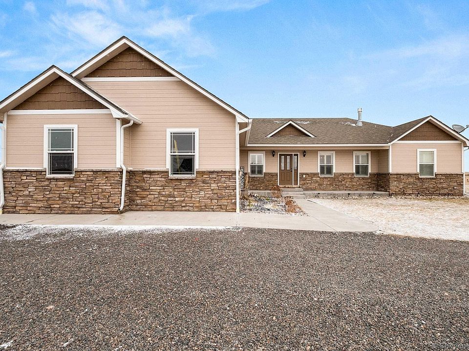 This has it all! Rural property not too far from town? Check! All main floor living? Check! 3 car attached garage and RV parking? Check! Circle drive through and landscaping with fencing? Check! That is just the beginning! The minute you walk into this stunning home, you feel cozy and comfortable. It offers an open concept with a large island, spacious dining room, hardwood floors and granite countertops. The primary has a 5-piece bathroom and a walk-in closet. The basement is partially finished with 2 bedrooms and a full bathroom, framed and electric completed for you to add personalized touches perfect for your family! The backyard features a striking view and perfect for your family with privacy fence, landscape, charming patio and it all sits on close to 6 acres!