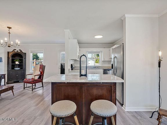 Updated 3 bed./2 bath brick ranch near Porters Neck with a private POOL + no HOA or city taxes! This well-maintained home on .37 acres is move-in ready and includes a sunken den/formal dining room. Enter the covered front porch and admire the open floor plan with tons of natural light. The kitchen has lovely white cabinets (lowers are newer), beautiful light gray granite countertops, custom island/bar (moveable), stainless appliances and connects to a large laundry/mud room. Easy care & durable LVP flooring throughout living/dining/kitchen and bedrooms (no carpet!). Master bedroom is spacious and includes a private bath with updated granite vanity, tub/shower water closet, and a walk in closet. Bedrooms 2 & 3 share a full guest bath off the hallway. Enjoy the backyard paradise with a private pool complete with a multi-level deck for entertaining, storage shed, play set & large garden area. Need a man cave or she shed? There's a detached garage/workshop 20' x 20', with a 10' overhead door, water & electric including 240 outlets. Extras include: parking pad, wooden privacy fence with double gate to back yard, roof replaced 2016, HVAC 2017, ceiling fans in all bedrooms. All windows and doors have been updated + storm doors on all entrances, vanity lights and disc ceiling lights are brand new. Fabulous location is minutes to shopping, dining, entertainment, golf, boating/kayaking, medical facilities, & major highways. Nearby Ogden Park has ball fields, a pond, skate park & off-leash dog zone, plus BBQ & picnic areas. Only 9 minute drive to Mayfaire, and 15 minutes to pristine Wrightsville Beach. Located in the USDA loan 100% financing area, contact agent for more info. You'll love calling Brickstone Estates home!