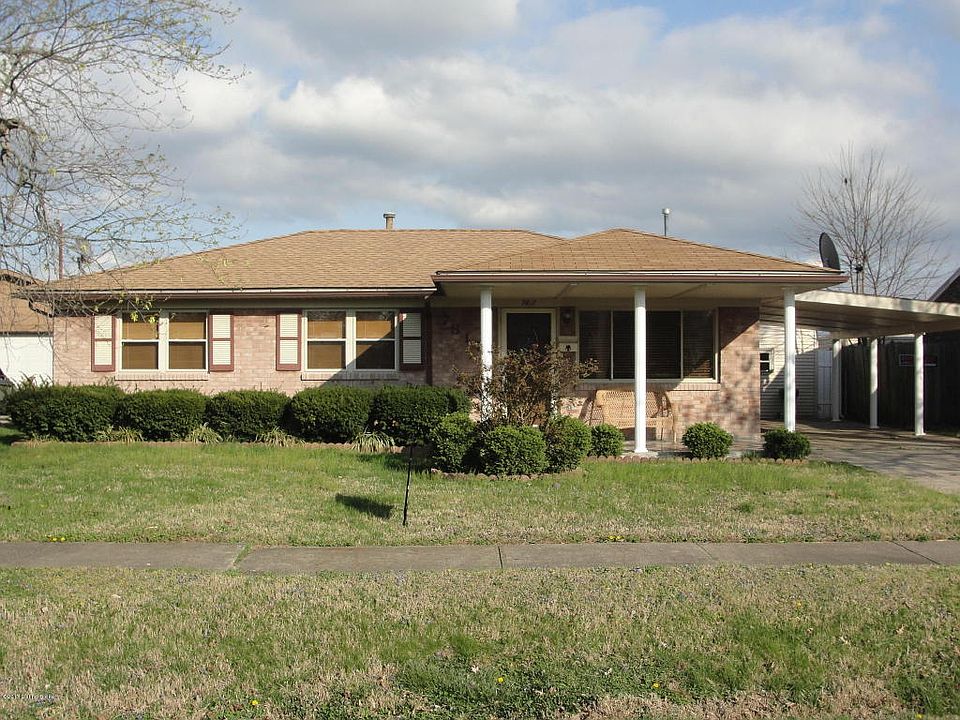 HERE'S YOUR LOTTERY PICK!!! DON'T BE SURPRISED THAT THE FIRST PERSON THAT VIEWS THIS PROPERTY, WILL PURCHASE!!!An absolutely beautiful 3BR Brick Ranch, this home is a ''showplace''!!! Updated eat-in fully equipped kitchen, lots of updated oak kitchen cabinets, parkay hardwood flooring in kitchen/living rm/hallway, bath completely updated, replacement windows, covered 15 X 23 patio, above ground pool (as-is or owner will remove if purchaser desires), 1 car carport, central air, nice storage building, quick possession, this house will sell quickly, better hurry!!!