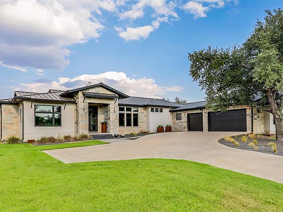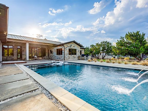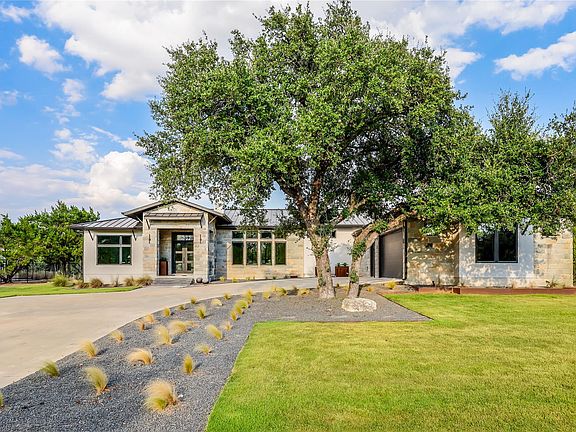 Beautifully Refreshed – With new wood floors, updated bathroom tile, fresh paint, and more! This modern single-story residence in the coveted Meridian community by Nalle Homes combines thoughtful architecture with refined craftsmanship for elevated indoor-outdoor living. A rare lot spanning both Hays and Travis counties provides families with unique flexibility and options for schools—an incredible advantage in addition to custom luxury and lifestyle. The distinctive U-shaped floor plan creates two private wings housing 4 spacious bedrooms, ensuring tranquility for both owners and guests. Expansive sliding glass doors frame views of the resort-style backyard oasis, featuring an oversized heated pool and spa designed by Athena Pools—perfect for both sun-drenched days and starlit evenings. Inside, versatile living spaces flow seamlessly from the study with stained French doors to the airy great room designed for gathering. The chef's kitchen stands as the heart of the home, showcasing Thermador appliances, granite counters, and a sculptural honed marble island that invites both conversation and culinary creativity. Sophisticated enhancements include tinted Andersen 100 windows, a whole-house water softener and filtration system, a central vacuum, and a soundproofed media room that doubles as an additional office or bedroom for evolving needs. The oversized three-car garage features epoxy flooring and built-in storage by Garage Experts, while a fully finished private studio—climate-controlled and fully wired—offers space for creativity or work. The outdoor experience continues with a built-in grilling station featuring a Napoleon grill, a mini-fridge, and a Big Green Egg smoker, all set against lush landscaping with greenbelt views. Located just 15 minutes from downtown Austin within the Meridian master-planned community, residents also enjoy access to a private 10-acre lake, community pool, and walking trails.