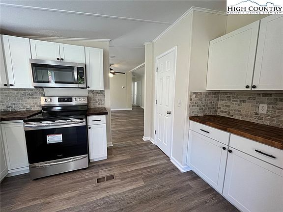 Refreshed 3BR 2BA home on an open, very gently sloping and useable 1.4-acre parcel conveniently located in the village of Todd between Boone and West Jefferson. Home offers wrap-deck, seasonal views. Inside offers new flooring (LVP and carpeting) new paint, refreshed kitchen and new appliances and cabinetry. Spacious kitchen with lots of counter space and storage, large living room and spacious master suite. Features two additional bedrooms and second full bath. Outbuilding given no value. New driveway recently built and well drilled earlier this year. No restrictions. Perfect land for a mini-farm, large garden. Short trip from property to New River. Overlooks Todd Historic District.