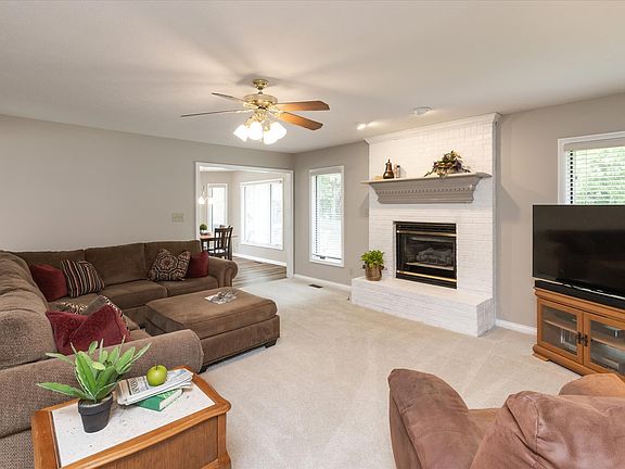Pride of ownership shines throughout this freshly painted brick "ranch & a half" in beautiful Timberlakes! Bright eat-in kitchen w/SS appliances (all stay!), abundant cabinet storage, workstation, center island & pantry. Versatile sunroom/flex space opens to patio & large fenced-in backyard w/basketball court. Main floor laundry, powder rm, formal dining rm, & cozy family room w/floor to ceiling gas FP. Three main floor BDs including lg primary BD w/vaulted ceiling, WIC & ensuite w/dual sinks & jetted tub, 2 additional BDs & updated full bath. New LVP flooring & carpet throughout! Upstairs loft makes a perfect bedroom/office/rec room. Home warranty offered by sellers. All this plus great schools & neighbors! Welcome home!