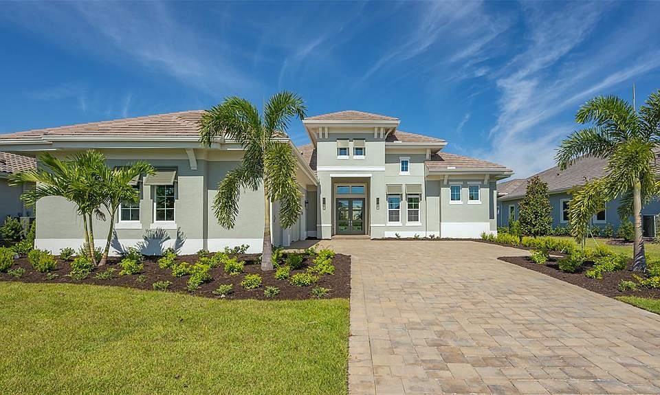 One or more photo(s) has been virtually staged. Welcome home to the exquisite gated community of Lake Club of Lakewood Ranch. This BRAND NEW, never lived in, custom-built Stock Signature Madison II home boasts 4 bedrooms and 4.5 baths PLUS a den/office with plenty of space for both formal and casual entertaining and everyday living. As you enter through the stately glass-paned double front doors, you are greeted with the breathtaking palatial great room which features a soaring tray ceiling with unique decorative molding and beautiful tile floors, which carry beautifully throughout the rest of the main living areas. The adjacent gourmet kitchen is a chef’s dream with custom cabinetry, quartz countertops, upgraded Stainless Steel Kitchen Aid appliances, gas cooktop, a wine bar, expansive floating island, pantry with fantastic built-in wood shelving and a cozy eat-in breakfast area. Step outside through the large sliding glass doors to your very own private backyard oasis. The expansive lanai is fully enclosed with a marvelous panoramic screen and offers a spacious outdoor living area and outdoor kitchen with grill, vented hood, refrigerator, and sink for easy entertaining and backyard soirees year-round. The heated luxurious pool boasts a spa and relaxing water feature adding to the exceptional resort-style feel. After a day of relaxing by the pool, unwind in the perfect quiet retreat of your opulent primary suite. Lofty tray ceilings and glass-paned French doors give the room a spacious, light, and airy feeling and large his and hers closets provide plenty of storage space. The plush ensuite bath boasts dual vanities, a walk-in shower, and a beautiful free standing soaking tub. The remaining three bedrooms are generously sized and each have their own ensuite baths with stunning finishes as well. Additional highlights of this home include a spacious laundry room with washer and dryer, laundry sink, and plenty of built-in cabinetry for storage, hurricane windows throughout and a roomy side loading 3-car garage. The Lake Club is one of the premier gated communities in Lakewood Ranch. Amenities include the unparalleled 20,000 sq. ft. Grande Clubhouse where you’ll find phenomenal indoor and outdoor dining venues, a fitness center, yoga room, game room, and social activities along with a beautiful pool, tennis courts, pickleball courts, and more! Plus, in The Lake Club, you are in the heart of it all, with close proximity to the popular new Waterside Place, Lakewood Ranch Main Street, and the amazing shops and restaurants of University Town Center as well as easy access to downtown Sarasota and all the stunning beaches our area has to offer. Your luxurious lifestyle awaits! Call today to schedule a private showing!