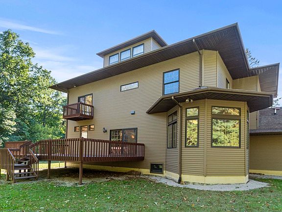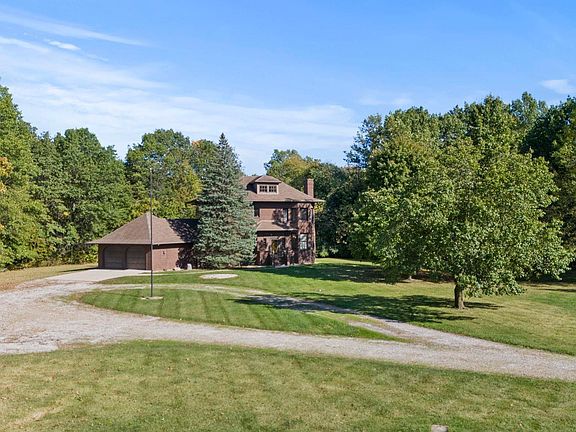 This stunning Amish-built, three-story, custom home on approximately 42 acres blends classic craftsmanship with modern luxury. The home features high ceilings, custom oak hardwood floors, and elegant woodwork, and is filled with natural light from large windows. The gourmet kitchen features Amish-made cabinets, a Subzero refrigerator, Dacor range, Gaggenau oven, built-in deep fryer, and a spacious walk-in pantry. The cozy breakfast nook and large deck overlook woods and a river. The living room is enhanced by beautiful woodwork and a wood/gas marble fireplace. The master suite features a sitting area, walk-in closet, and luxurious bath. The second bedroom has a walk-in closet and nearby full bath, while the top floor features a bonus room, third bedroom, and secret room. Other features include geothermal heating and cooling, antique accents, and a detached 39x23 garage with power. Practical upgrades include a new hot water heater, water softener, reverse osmosis and sulfur treatment systems. A full basement, two-car attached garage and large detached 39x23 garage with power offer ample space for storage and workshops. There is a second flue installed which could be used for a fireplace in the basement or master bedroom. House and north half of parcel (42+/- acres) included in this listing. An additional 40+/- acres is available for purchase. The tillable acreage is being cash rented for the remainder of the 2024 crop season. (Annual taxes are based on current 82.22 acre parcel.)