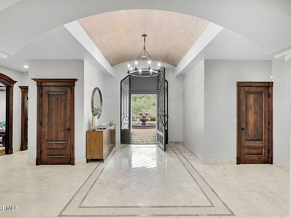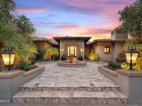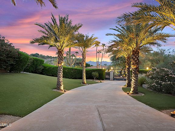 A rare & secluded sanctuary awaits at this unparalleled compound representing the ultimate retreat in the heart of Paradise Valley. This incomparable estate captures the essence of Santa Barbara grandeur. The privately gated, elevated & mostly flat 2 acre lot gives 270 degrees of captivating mountain/city light views, including fiery views of Mummy Mtn. Masterfully designed with a commercial grade kitchen, butler's pantry, 861 bottle wine cellar, media room, gym, 3 fireplaces, temp-controlled 3-car garage, 4-car RV garage that can accommodate lifts or be used in it's current indoor golf simulator set up. Nature & luxury converge in perfect harmony outdoors that includes a 9' diving pool, spa, 5 hole putting green, pickleball/basketball sport court. Your legacy estate awaits.
