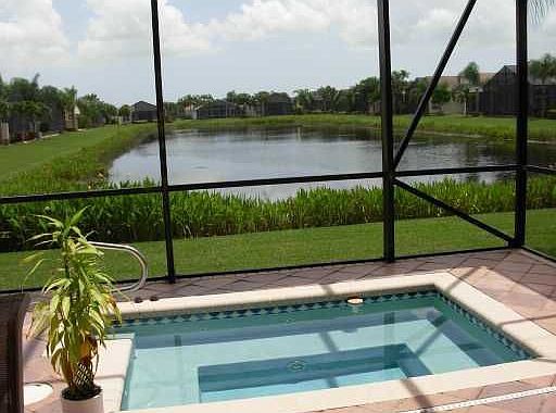 Beautifully upgraded, spacious, meticulous home. Enjoy the long tropical, lake view while luxuriating in the inground hottub on the extended screened patio. Attention to detail is evident throughout this lovely home.This gracious home welcomes your guests into a large entry foyer. Immediately the elegant french doors leading into the den are visible. The neutral colors will enable you to see yourself in your new home and the many upgrades will enhance the experience. The ceramic tile is laid on the diagonal in the living areas with carpet in the bedrooms. The upgraded kitchen has pull-out shelves,a bottom lazy susan cabinet for easy storage, 42" tall maple cabinets, granite countetops with a full backsplash, a slide-in stove, under and over cabinet lighting and an extended snack bar. There is a reverse osmosis system installed and a full house water filtration system. Installed on all the windows are Hunter Douglas silhouette blinds. The master bedroom has 2 large custom-fitted walk-in closets and a french door leading out to the large, extended, screened patio. This is the perfect setting for utmost relaxation and for entertaining. Whether you soak in the inground hottub or relax on the chaise lounges or sit at the patio table or just enjoy the quiet, beautiful lake setting, this is your own, private utopia. The bathrooms are also upgraded. This move-in ready home is waiting for your personal touches. Dining room ceiling fixture and library bookcase with ladder in den excluded from purchase. Refrigerator in garage included in sale. All measurements are deemed accurate but not guaranteed.