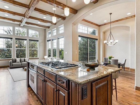 PRIVATE AND PEACEFUL RETREAT! Wake up to quiet mornings and sweeping golf course views in this beautiful Vallagio Golf Villa, perfectly positioned behind the 4th green of the Inverness Golf Course. Designed for true lock and leave living, this Ranch-Style End Unit offers serenity, privacy, and comfort without the upkeep. The HOA maintains all exterior care, giving you time to enjoy your home. The walkway to the front door sets the tone for what awaits inside. The Kitchen features Cherrywood cabinets, a large granite island with seating, a dining area, and a spacious walk-in pantry. The En-Suite Primary Bedroom includes a cozy sitting area, a five-piece bath, a walk-in closet, and direct access to the Laundry Room for convenience. The Living Room centers around a gas fireplace and soft natural light that enhances its cozy feel. French doors lead to a private Office that makes working from home easy. The walkout Basement adds another En-Suite Bedroom, a third Bedroom, a full Bath, a wet bar, a large Family Room, and an oversized Storage Area. Enjoy both levels of outdoor living. The upper deck overlooks the golf course with a gas line for grilling and fairway views, perfect for peaceful evenings or morning coffee. The lower patio has its own gas line for an outdoor firepit, creating a private retreat surrounded by calm and comfort. Upgrades include a new furnace, new smart WiFi-controlled thermostat, new air conditioning unit (2024) and newly refinished Hickory Flooring. Plantation shutters, high ceilings, a security system, washer and dryer, WiFi-controlled garage door, and gas lines on both decks. Natural light fills the Main Living Areas, creating an open, warm atmosphere. This turnkey Villa combines low maintenance living with comfort and a premier location. Walk to nearby salons, restaurants, yoga studios, and the light rail. Experience peace, privacy, and convenience—welcome home to Vallagio.