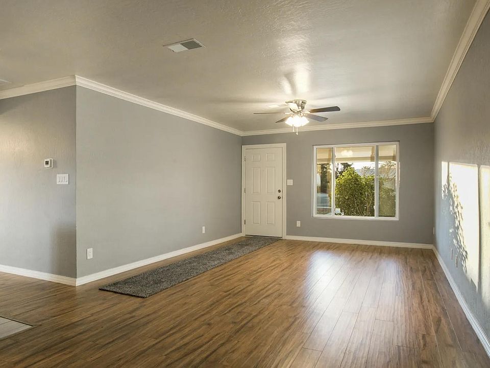 This an exceptional and beautiful home completely remodeled, many modern amenities include an open floor plan design, kitchen island, new cabinets with gorgeous granite countertops, new SS appliances. Includes formal living room, large family den with beautiful fireplace. Spacious master suite with gorgeous master bath.New wood laminate flooring with luxury carpet in bedrooms. Modern tile flooring in kitchen and wet areas. Bathrooms include granite countertops, ceiling-high mirrors, new shower doors. New refrigerated cooling system with forced air heating. New paint throughout, new garage doors & openers.New shingle roof, new front, and rear landscaping, new front yard sprinkler system with an electric timer. Backyard has a pergola, shed, and a dog run. The owner pays for electricity. 2 small dogs up to 20 pounds are permitted - $50 pet rent per pet applies. Smoking is strictly prohibited inside the house.