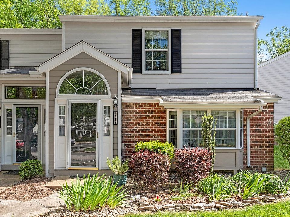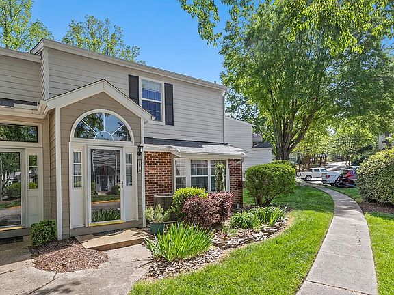 This updated light & bright end unit condo lives like a townhouse, with dual primary suites on the second level. Gorgeous landscaping sets this one apart from the rest, with a stunning stone patio & lush plantings in front & back, set against a mature hardwood tree line for added privacy. The remodeled kitchen features granite countertops, backsplash, sleek black appliances & cozy breakfast area or reading nook. New triple-window sliding glass doors bring tons of natural light into the spacious family room & dining area, highlighting warm engineered hardwoods throughout, including on the visually interesting open concept stairs. The second level features two large primary suites, each with an updated private bath. Newer windows, smooth ceilings, updated lighting, HVAC 2017, roof 2018 (HOA). Amenities include pool, tennis, clubhouse/gym & playground. HOA maintains exterior including landscaping, roof & gutters. Refrigerator & W/D convey. Convenient North Raleigh location is close to shopping, restaurants, parks, major highways & is within 15 minutes of RDU airport. *OFFER DEADLINE 7pm SUNDAY 4/23!*