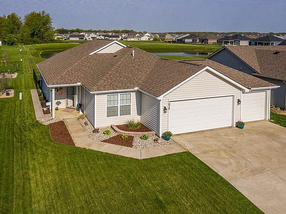 Located in the northeast side of Fort Wayne, this beautiful 3-bedroom 2-bath custom home has a pond view, double patio and attractively fenced yard. The welcoming entry leads to an open floor plan, featuring a stone fireplace and vaulted ceilings in the great room, an open-concept kitchen with white cabinets, stainless LG appliances, and a walk-in pantry. The master boasts a walk-in closet and double sink vanity. Other home features include painted woodwork, 6 panel doors, a separate laundry room, a heated 3 car garage and much more! The home is close to Leo and Grabill areas, so traffic is not a problem. These homeowners have done a lot of home improvements since purchasing the 4-year-old home in November 2016. The whole house was painted, and the family room, master and each of the three bedrooms have new ceiling fans w/lights. New lights and blinds were installed in the dining area. The kitchen has a new faucet and all new appliances. The master bedroom comes with new mirrors and blinds. The guest bath has a new cabinet and toilet. The laundry room has new cabinets. The garage has a new peg board, mounted heater, and pull-down attic stairs. The front yard has new landscaping, a sealed driveway, and was recently grass seeded and treated with over-seed and fertilizer. The backyard was also grass seeded. With miles of walking trails nearby and access to excellent schools, and shopping, this home is a great place to live! All Window treatments stay, except Master Bedroom and Garage Heater is included. Garage refrigerator is excluded.