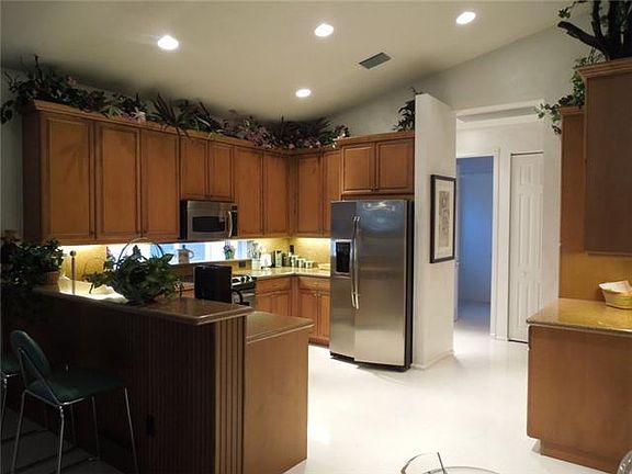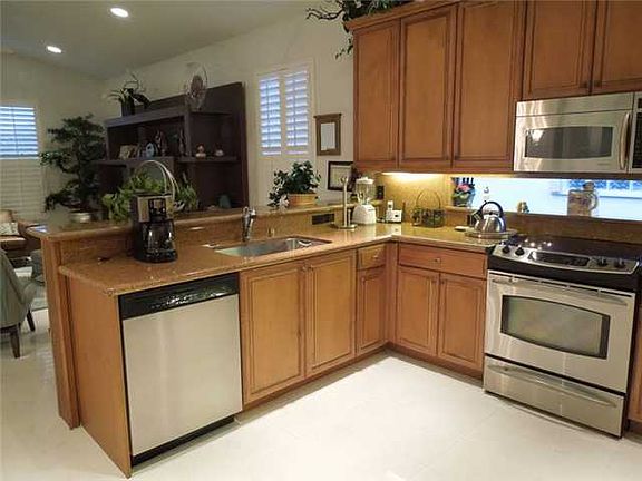 Meticulously maintained home in the beautiful Valencia Shores. This model like home has stunning porcelain tile floors throughout. The kitchen boasts gorgeous upgraded maple cabinetry with granite counter tops. The stainless steel appliances are like new. Your screened in patio has a peaceful view of the lake and well placed greenery that accents this property. From the moment you enter Valencia Shores the breath taking views will let you know why you will want to call this home. There are 2 spectacular clubhouses w/ over 50 000 sqft total space offering various ammenties from cards to fitness. You will also find a full service nail salon internet cafe 3 community swimming pools with resistance 16 tennis courts cinema theater and so much more.