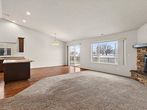 Lovely home on the Plains Golf Course in Cheney! Cathedral ceilings, open floor plan, large kitchen island, & beautiful fireplace. Full master ensuite includes double sinks, garden tub, & large walk in closet. 3 car garage, fenced backyard with sprinkler system, & oversized patio for relaxing & admiring your beautiful golf course views!