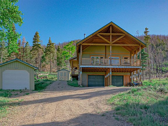 $10,000 Price reduction! This gorgeous and well-maintained home could be your dream of mountain living come true! The main floor offers 2 bedrooms, 2 bath, another office/guest room and a large finished lower level. The views off the large, covered deck are stunning, elk are a regular sight! A spring fed stream meanders through the lush property. The house sits on two lots (2.88 acres) and borders 'common land', where nobody can build, on 3 sides. The open floor plan has a large kitchen, recently replaced appliances, an island and tons of pantry space. The living area with a cozy wood stove and lots of windows has sliding doors that open to the large covered deck. The large master has a full bathroom, jetted tub, double vanity, huge walk-in closet. With a guest room, an office and full guest bathroom and Fiber High Speed Internet you can comfortably work from home and entertain family and friends. The spacious 448 SqFt covered front deck is a fabulous outdoor extension of the living room. The lower floor has spacious TV/Game/Guest room with its own 3rd bathroom and wood stove. Also on the lower floor is a utilities area and lots of storage space and a 644 SqFt 2 car garage and a spacious workshop. With 1 additional detached garage and 2 additional storage buildings you will have lots of space for all your hobbies and equipment. Your personal water well delivers THE best and coldest Rocky Mountain water. The house has a septic system with a leach field. In the backyard is a fenced dog run for your furry friends. The powerful generac back-up generator will stay with the house. Forbes Park is a beautiful, sub-alpine, gated and secure mountain community at 9000ft altitude. The HOA providing security, road maintenance, snow plowing, trash removal and small community center. Enjoy mountain living at its best with cool summers and sunny winters with moderate snowfall.