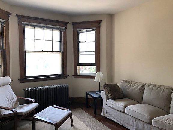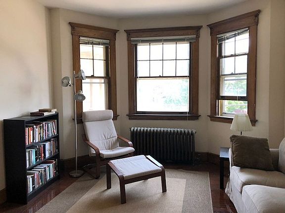 Front porchBuilt-in bookcaseHardwood floorsBright sunny unitKitchen with large pantry