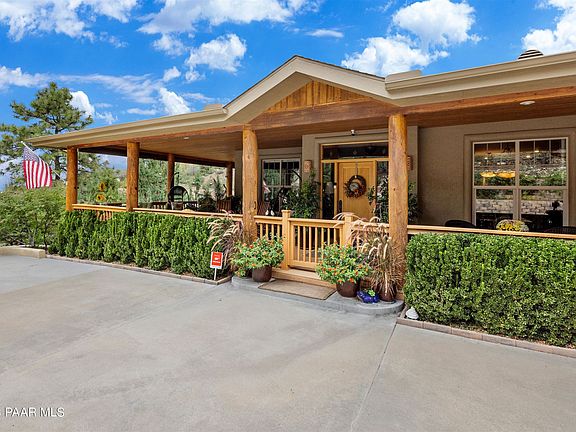 Nestled in the picturesque subdivision, The Foothills, this exquisite residence offers a sanctuary of tranquility and natural beauty. This private oasis boasts a stunning picturesque view of Granite Mountain, best enjoyed from the expansive wrap-around front porch. The spacious interior provides comfort and luxury with generously sized rooms and a gourmet kitchen that will delight any culinary enthusiast. Equipped with a sub-zero fridge, icemaker & Wolf gas range, this kitchen is a dream for both cooking and entertaining. This home features three private suites each with its own en-suite bath ensuring comfort and privacy for all. Additionally, there's a versatile fourth room that can serve as a bedroom or a spacious sitting area for the 2nd guest suite adapting to your lifestyle needs.