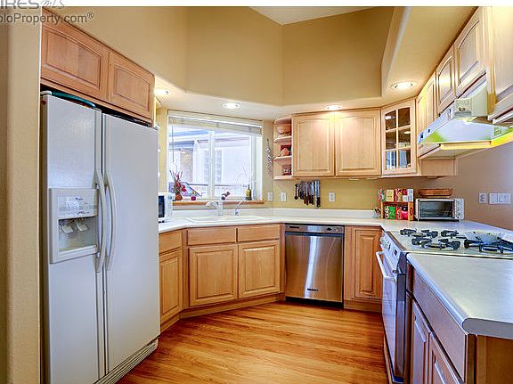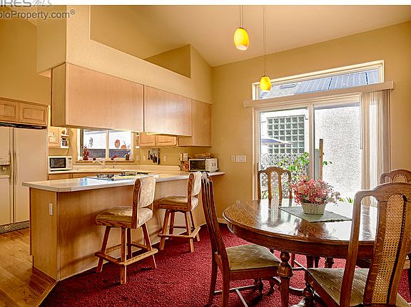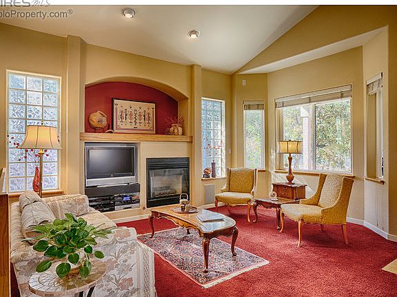 Great floor plan! One level living+ big finished basement. Kitchen has maple cabs, gas range/oven; dining & living rooms with pendant lights, cozy gas fireplace, bow window. Wonderful patio with water feature & golf course beyond! Spacious master with 5pc bath, cherry cabinets,granite counter tops, glass door to deck. Basement has big rec room, wet bar, bath, study, 2 more bedrooms w/egress windows & darkroom or craft area with sink. Whole house speaker system. Lawn care & snow removal by HOA.
