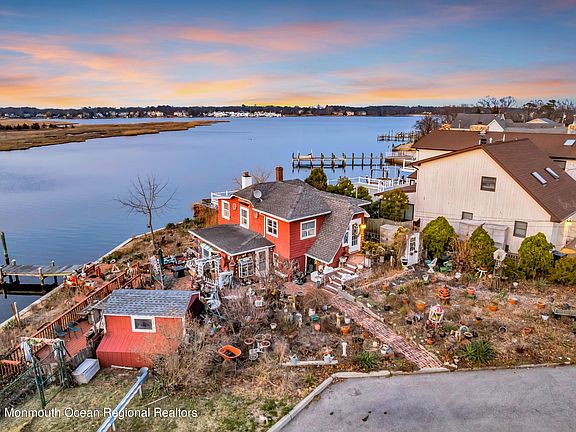 Coming Soon....cannot be shown until 3/25/22 Uniquely situated on a point, this open water location captures panoramic views of the Metedeconk River and includes 107 ft of waterfrontage, vinyl bulkhead, & ''L'' shape dock w/boat lift. Enjoy the sights and sounds of a variety of wildlife from the natural, scenic setting across the river. The 2 bedroom, 1.5 bath home has a living room with hardwood floors & fireplace w/wood burning stove. Dining room has bay window, and the kitchen includes SS appliances. 2nd floor has a sitting area, full bath & 2 bedrooms, one offering river views. Waterfront shed with outstanding ''She Shed'' potential. Vintage brick patio, upper & lower decks all overlook the river. Beautiful perennial gardens surround the front and rear creating a fairytale setting! Corner lot at the end of Laurel Ave & Community Drive. Year-round living or summer getaway
