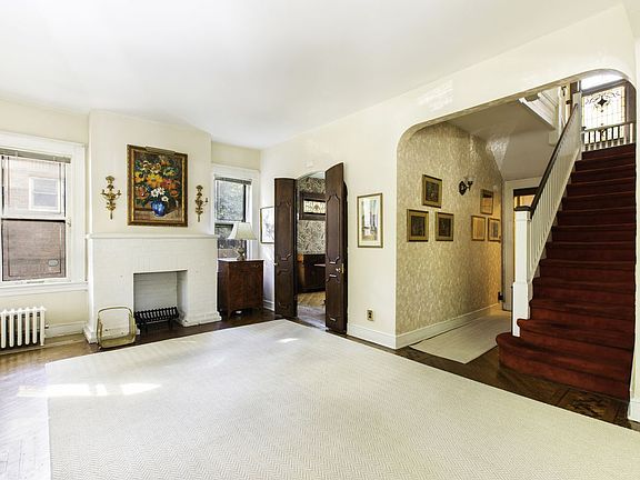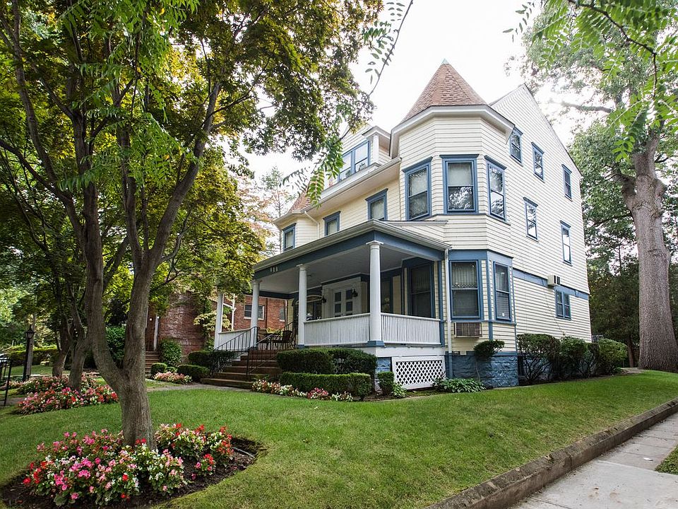 Located on a beautiful tree-lined street in the Historic Landmark section of Fiske Terrace, this stately Victorian home welcomes you with an expansive front porch overlooking a manicured landscaped garden with flowering shrubs. The formal living room spans the entire width of the home and boasts 9 leaded glass windows that bring in lots of natural sunlight, a unique arched stained glass window and fireplace. The formal dining room with original stained glass window is off the living room. Eat-in-kitchen and half bathroom complete the first floor. The second floor has three bedrooms and a full bathroom; the majestic sun-filled master suite overlooks the front of the home with sweeping views from its 8 large windows, and has its own sitting room, fireplace and spacious closets with built-in shelving. The third floor has three bedrooms and a full bathroom with a claw foot tub. Home features original parquet floors, two fireplaces, and leaded glass windows, as well as a rear patio and private backyard. Perfect for entertaining, the large finished basement has an oversized oak wood wet bar with brass foot rail, shelving and cabinetry that harkens back to the Art Deco era, built-in seating around the room with storage, and knotty pine wood paneling. Laundry and gas boiler (installed 2011) are in a separate room in the basement. Home has a brand new 2 car garage built 2015 New Roof and exterior paint 2016 2 blocks from the Q train, you're in Midtown in under 40 minutes! Close to Cortelyou Rd for great Restaurants and cafes. A Must See!