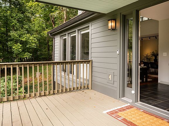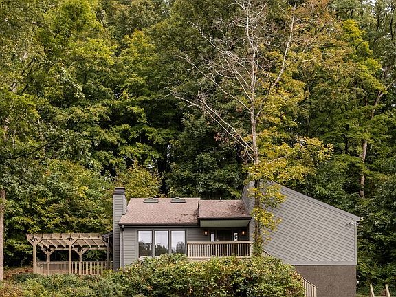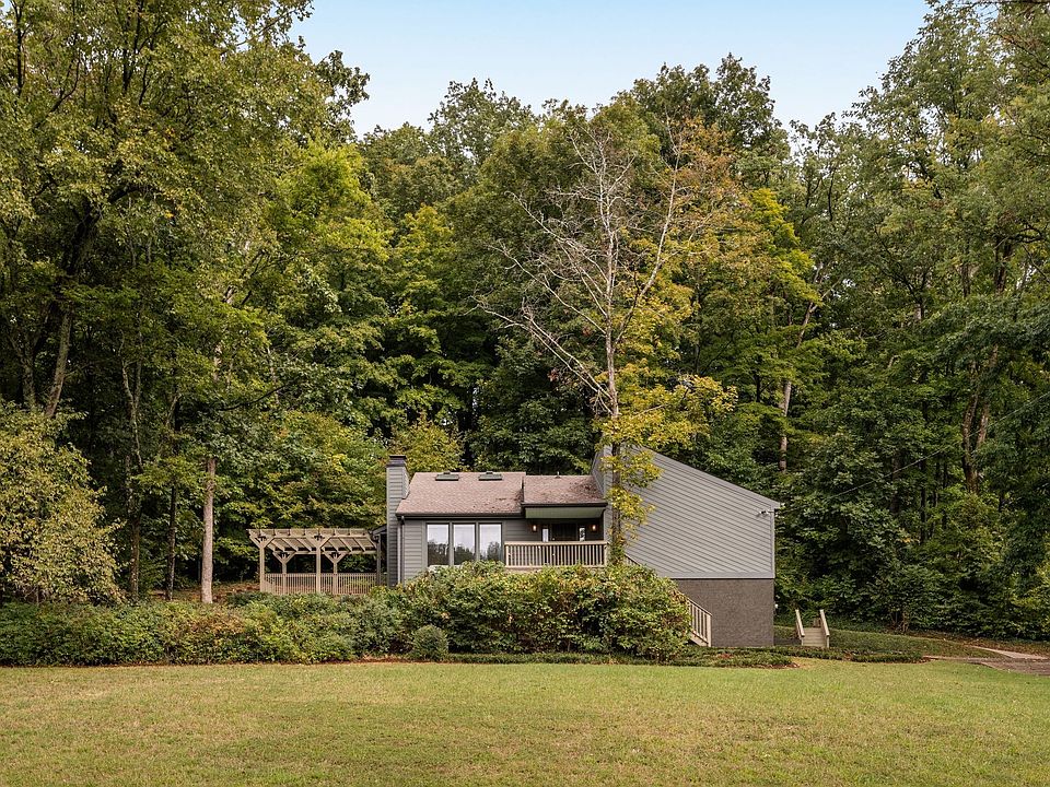 Affectionately known as the Hidden Treehouse, this Franklin retreat has been a creative sanctuary since its beginning. Designed and adored by its original owner, a renowned Brooklyn artist and gallery owner, the home was imagined as a place where architecture, color, and nature exist in harmony. Every paint tone was chosen with intention, echoing the hues of the Tennessee forest, allowing the structure to blend seamlessly into its wooded setting. Inside, striking rooflines, soaring ceilings, and walls of windows create a sense of volume and light. A wood-burning fireplace anchors the main living space, while a sculptural wood staircase leads to a loft framed with skylights and built-in cabinetry. The remodeled kitchen features two-tone cabinetry, herringbone backsplash, and stainless steel appliances, seamlessly connecting to the dining area and out to a rebuilt deck with pergola. The private quarters balance style and comfort, with bedrooms wrapped in large windows and baths updated with modern tile, new fixtures, and barn-door entries. A dedicated laundry space, built-ins, and an oversized two-car garage add function to the home’s artful form. With fresh paint inside and out and extensive foundation work by USS, this property has been both loved and fortified. The approach sets the tone: a scenic drive through rolling countryside that opens to several private acres alive with birdsong and cicadas. Privacy is abundant yet convenience is never sacrificed, with Westhaven and downtown Franklin only minutes away. More than a house, this is a retreat, a master class in design and inspiration. For those seeking something rare, soulful, and deeply connected to its landscape, the Hidden Treehouse is ready for its next chapter. Evenings bring cicadas through the trees, mornings unfold with light shifting across the loft and living room, and the rebuilt deck invites long dinners under the pergola. This is a property not only lived in but experienced, where daily rhythms feel