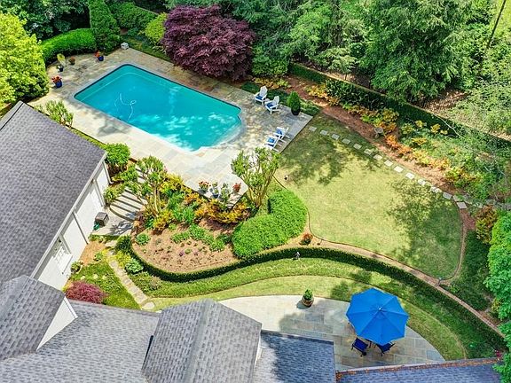 Fantastic family home on an acre of ultimate privacy in Buckhead's coveted Kingswood Neighborhood. Incredible natural light & stunning views w/ floor to ceiling windows & wall of French doors leading to walkout fenced flat backyard oasis. Professionally landscaped w/ blue slate patio/deck surrounding the Pebbletec pool & yard. Large master on main w/ spacious bath, heated stone floor/towel rack & oversized shower/steam. Renovated kitchen opens to keeping room, gorgeous paneled library/study, 3 bedrooms/2 baths up. Large rooms, hardwoods thruout -meticulously maintained.