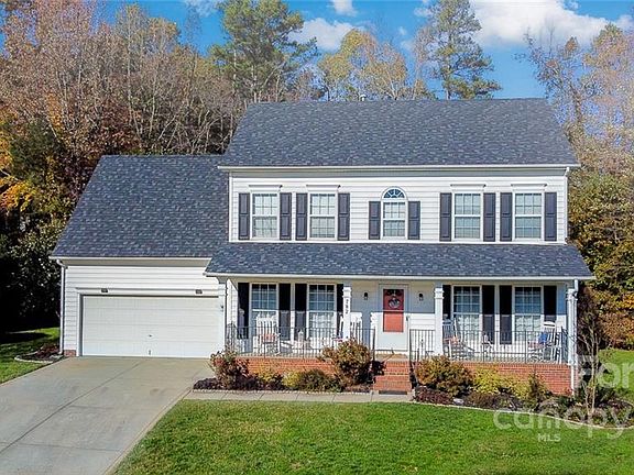 Welcome Home to this spacious, updated 4 bedroom, 2.5 bath house in the popular Fort Mill neighborhood of Knightsbridge. Looking for Southern charm? Enjoy your coffee or sweet tea on the spacious rocking chair front porch which extends the full length of the home. There is new wide plank flooring on main level, full baths have been remodelled and the kitchen updated. The kitchen features white cabinetry, an island, new countertops, and a 5 burner gas stove. Open to a large eat in breakfast area and to the family room. Generous-size bedrooms upstairs, new carpet, walk in closet in primary bedroom. Lots of storage with a walk-in attic off the 4th bedroom/bonus room and shelving in the garage. An extended deck overlooks the private backyard. New paint, New roof 2019, AC 2018, & hot water heater. This home is on a cul-de-sac, one of the largest lots in the neighborhood at .49 acres with a wooded back yard. You are only steps from the community clubhouse and pool. Make this home yours.